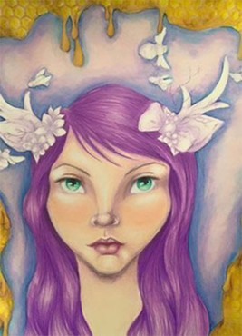 “I love Joynal! Who would have thought I could paint something like this? The fairy sitting on toadstools is a fabulous dancer. As she gets ready for her dance, fairies gather eagerly to admire her dazzling performance. I used colored pencils, acrylic paints, white pen, and watercolors.“