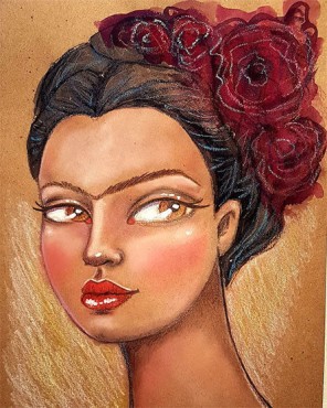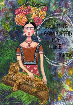 We go in-depth with sketching the turned face, adding colour using three distinctly different supply-oriented techniques! We expand on our own ‘versions’ of the icon to incorporate her life and love of Mexico into collage.