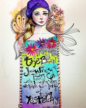 Thsi four part lesson shows yoou how to add quotes to your art with our waterbrush tips, lettering lesson, unique ‘Auditioning’ tools and in this BIG and juicy four part lesson!