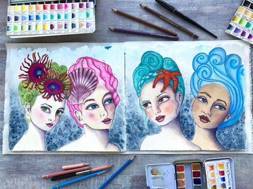 As artists, I believe we should go where we are DRAWN. If you have a love for the creating faces and figures from your imagination, then this workshop was mermaid for you! Dive into a whirlpool of new watercolor techniques and have a whale of a time with me as your FINstructor.