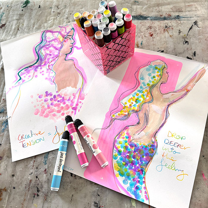 LadyBug Dotters contain a lovely watercolour ink formula that works beautifully with all Jane Davenport inks, paints and pencils!