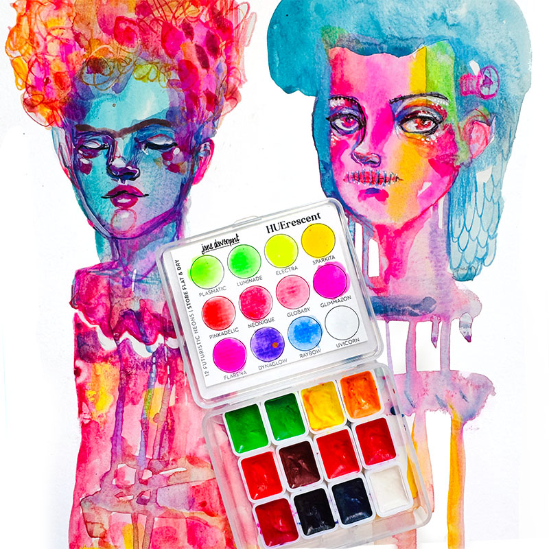 HUErescent is a set of twelve neon-bright watercolours that defy dullness and glow with neon attitude. Each high-energy hue radiates off the page even without a UV light. They are perfect for highlighting, layering, or electrifying your artwork.From Pinkadelic and Plasmatic to UVicorn and Dynaglow, this collection is unapologetically extra! I made it for artists who want to colour a little power house in their hip-pocket!