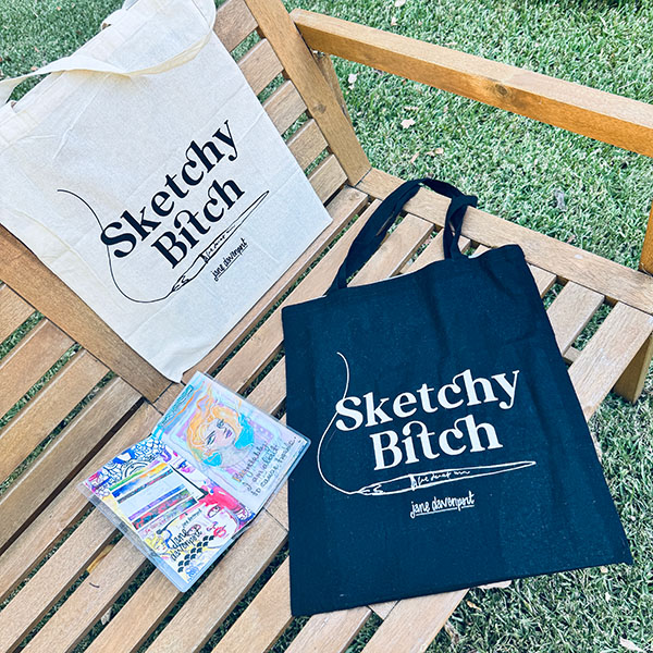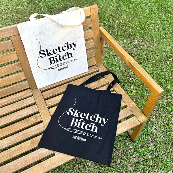 Printed in crisp white on black cotton, Sketchy Bitch is a playful nod to the wonderfully imperfect, pencil-smudged life. A knowing smile to fellow artists. A reminder not to take thingsāor yourselfātoo seriously.